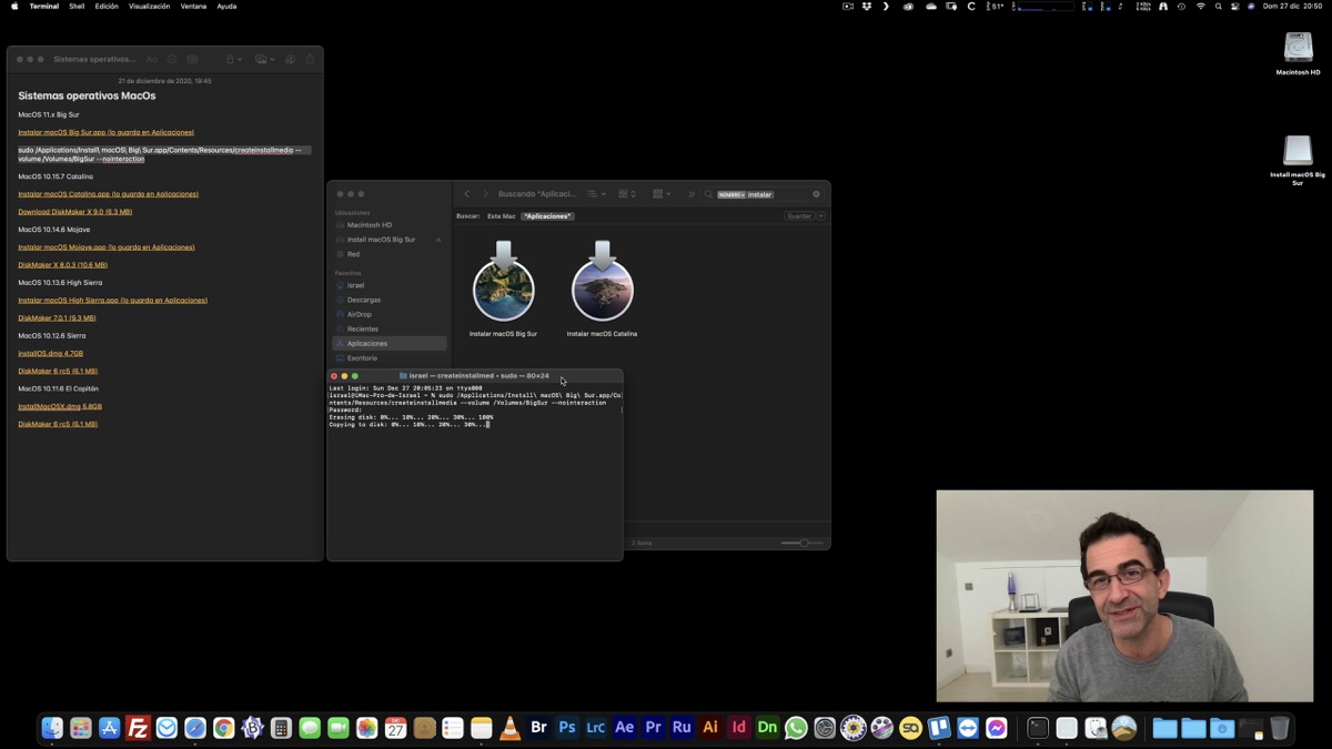Gracias por los vídeos que haces, intenté el otro día actualizar mi macmini pero da error cuando quedan unos 20 minutos, creo que puede ser debido a que solo tenía unos 20 gb de espacio y ahora no sé que puedo hacer… si me bajo el Big Sur que es el que quería instalar en el pendrive para que arranque sería una buena opción?